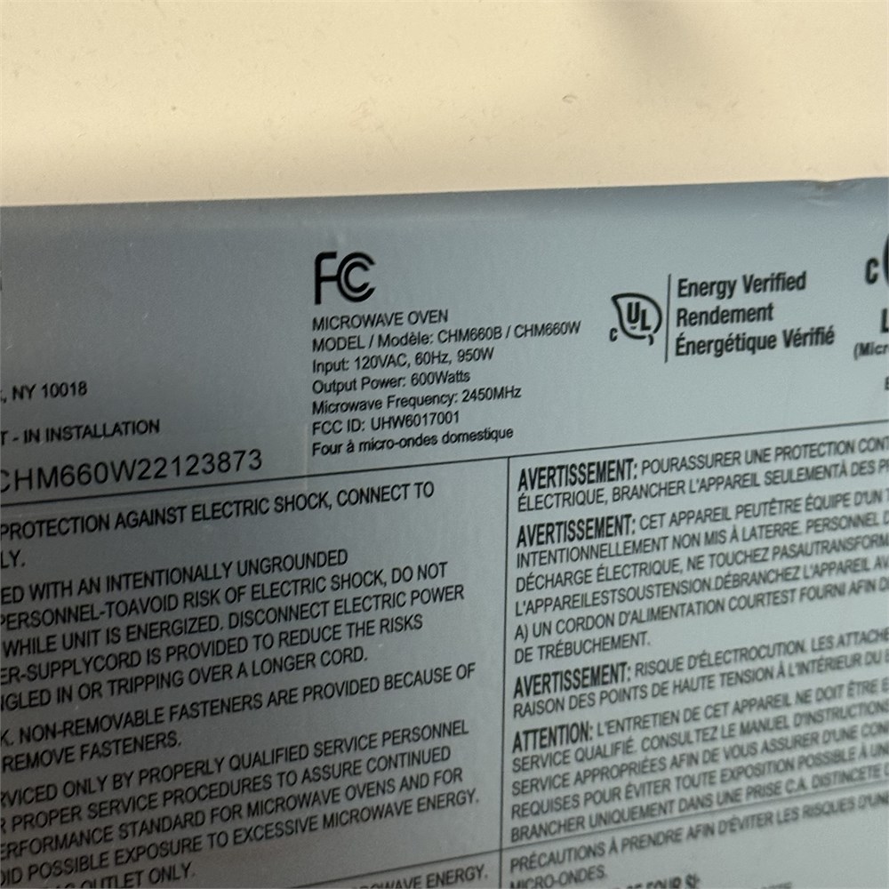Commercial Chef Small Countertop Microwave Model CHM660B