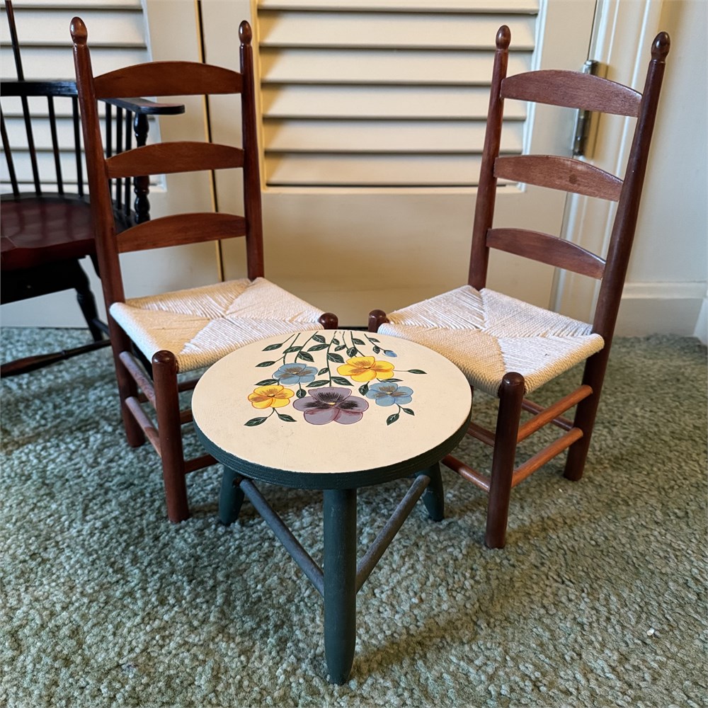Vintage Wooden Doll Furniture w/ Antique Desk, Table and Chairs