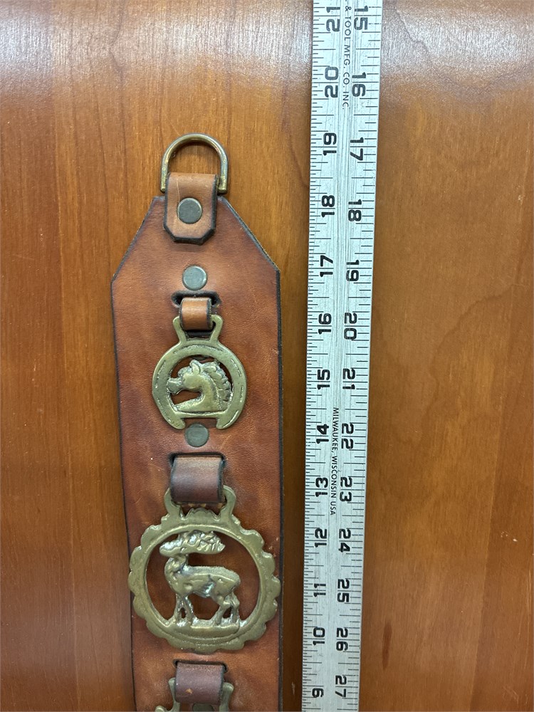 19" Leather Strap w/ Brass Horse Medallions
