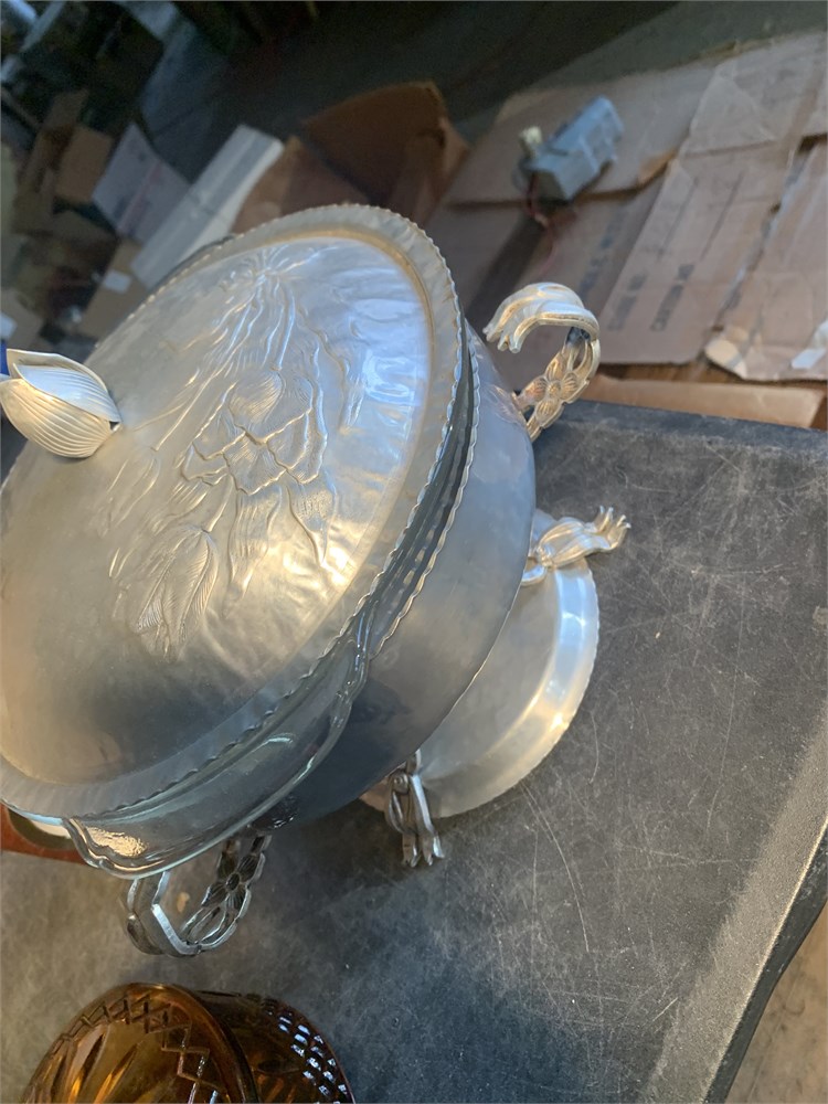 Hammered Aluminum Metal Chafing Dish W/Lid & Handles