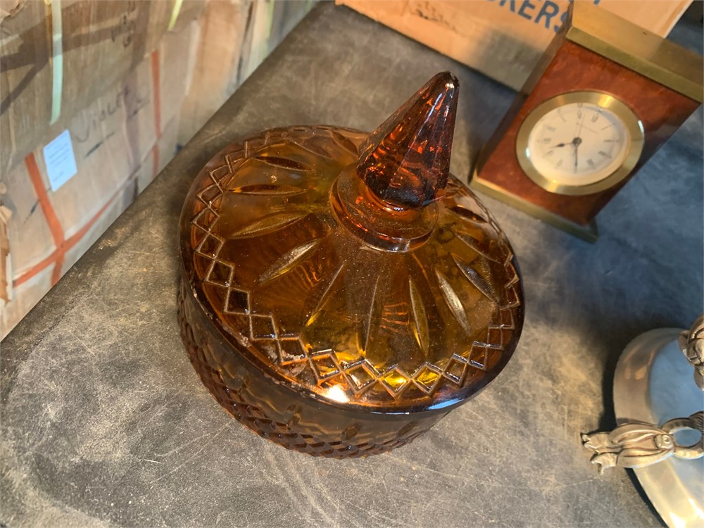 Indiana Glass Princess Pattern Amber Candy Dish Matthew Norman Desk Clock View Watchlist >