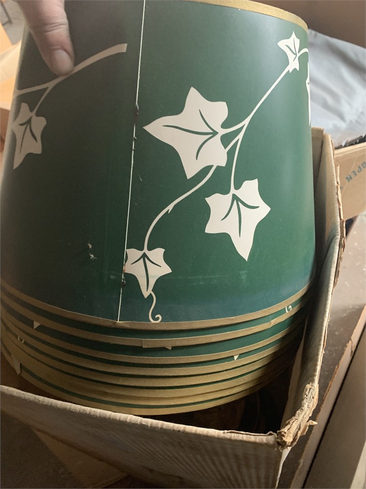 Green & Gold Lamp Shade W/White Ivy Leaf Pattern Lot of 8 View Watchlist >