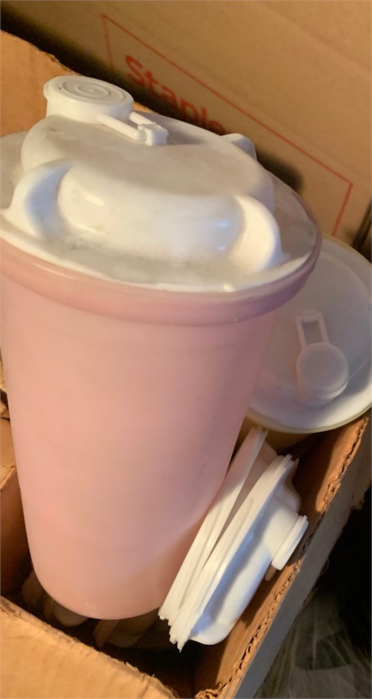 Vintage Sally Smart Plastic Lock-Lid Decanters Pink & Yellow - 1 Dozen (Approx) View Watchlist >