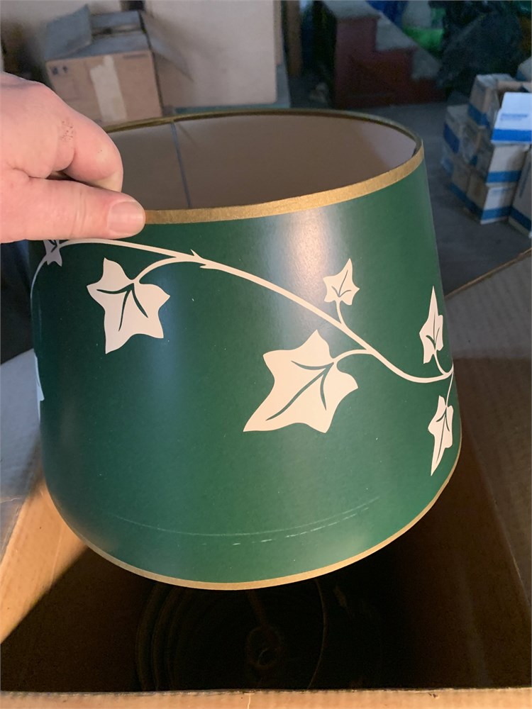 Green & Gold Lamp Shade W/White Ivy Leaf Pattern Lot of 10 View Watchlist >