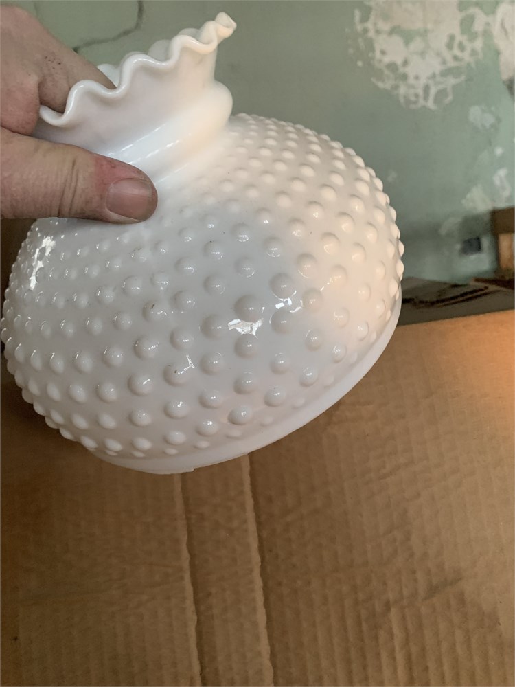 Super Glass Corp White Milk Glass Hobnail Replacement Lamp Shades W/Ruffled Top View Watchlist >
