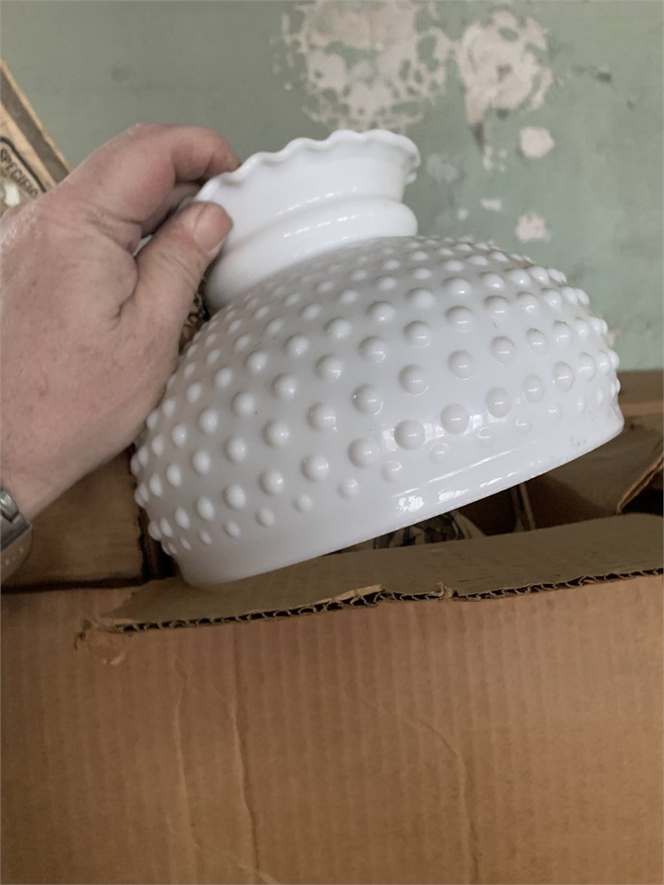 Super Glass Corp White Milk Glass Hobnail Replacement Lamp Shades W/Ruffled Top View Watchlist >