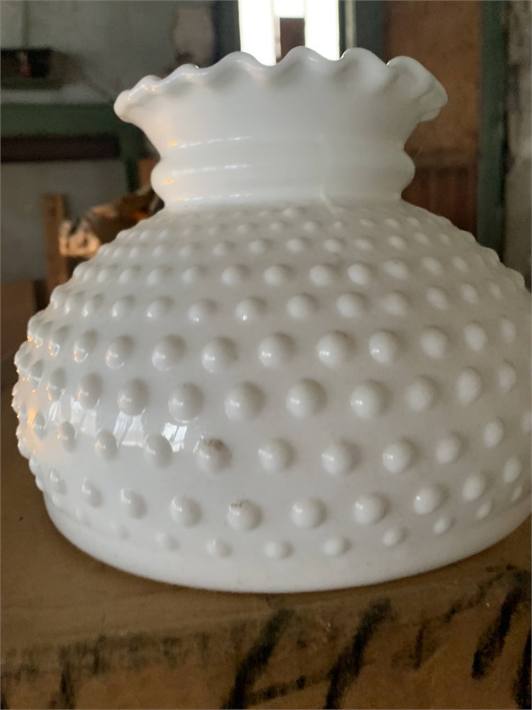 Super Glass Corp White Milk Glass Hobnail Replacement Lamp Shades W/Ruffled Top View Watchlist >