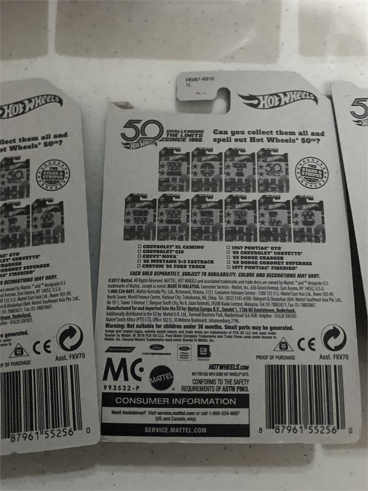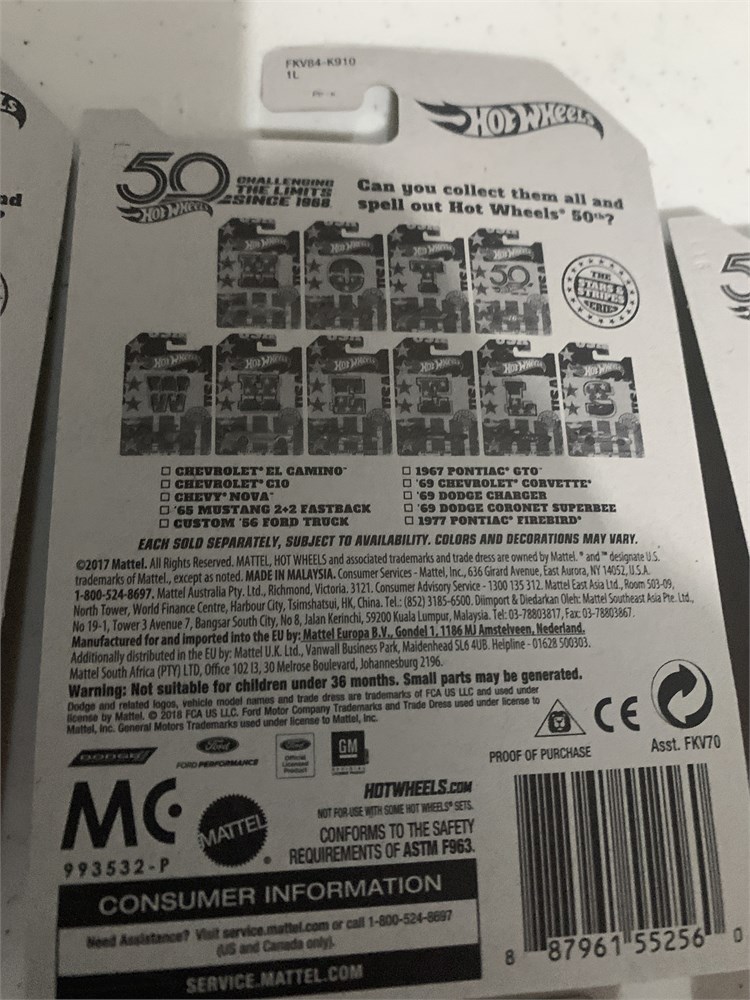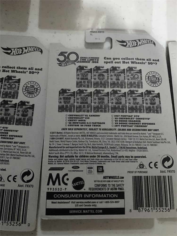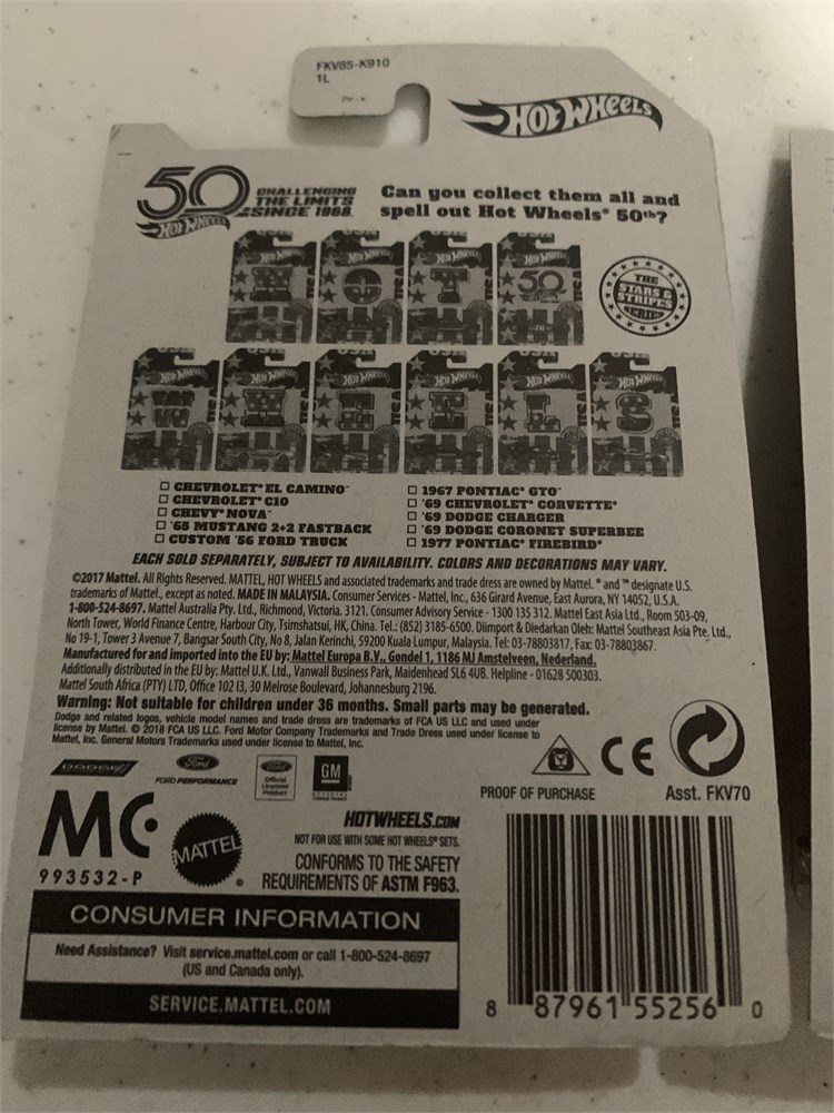 Hot Wheels 2018 Series 50th Anniversary Stars & Stripes Die Cast Car Lot of 10 View Watchlist >