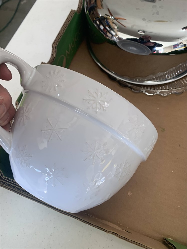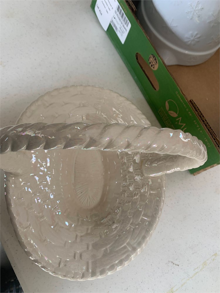 Iridescent Ceramic Handled Basket/Bowl, Embossed Stonewall Snowflake Mixing Bowl View Watchlist >