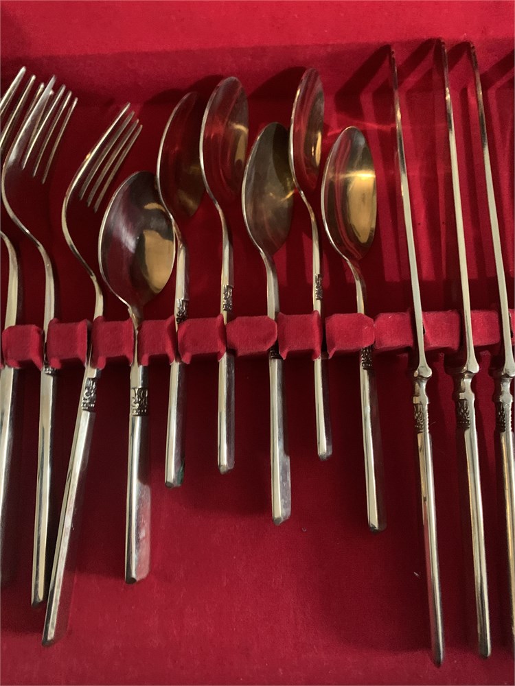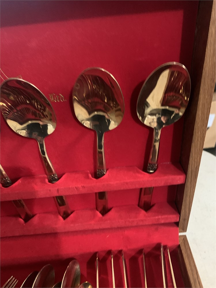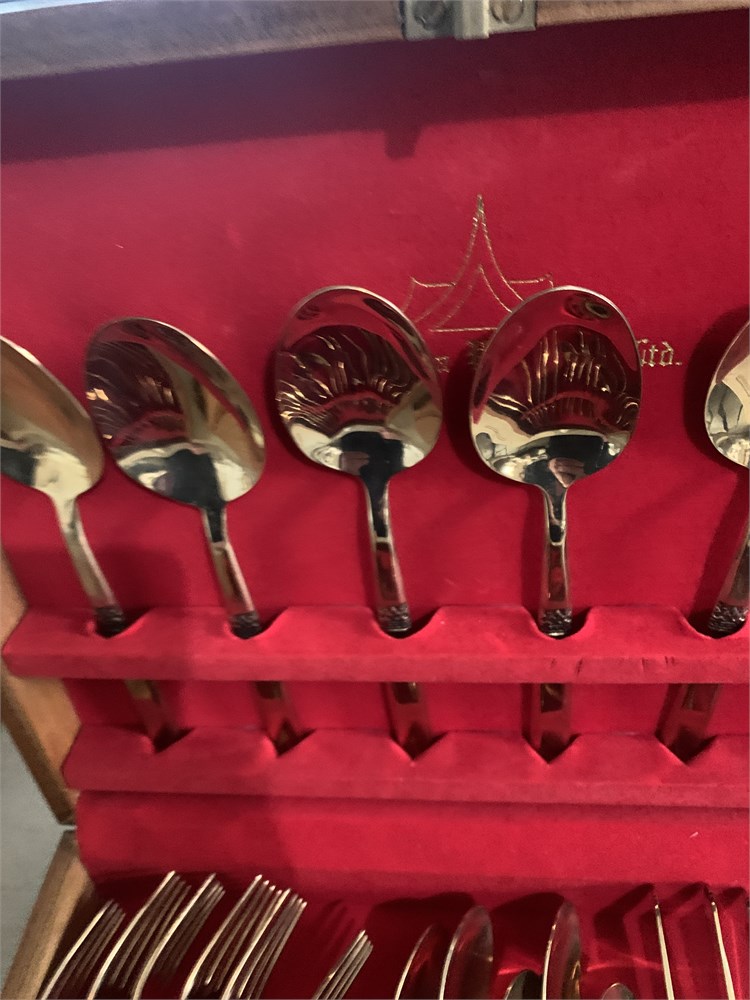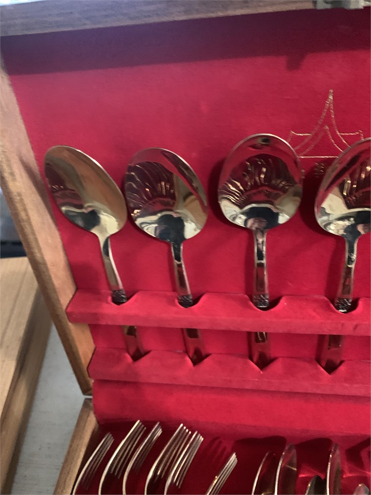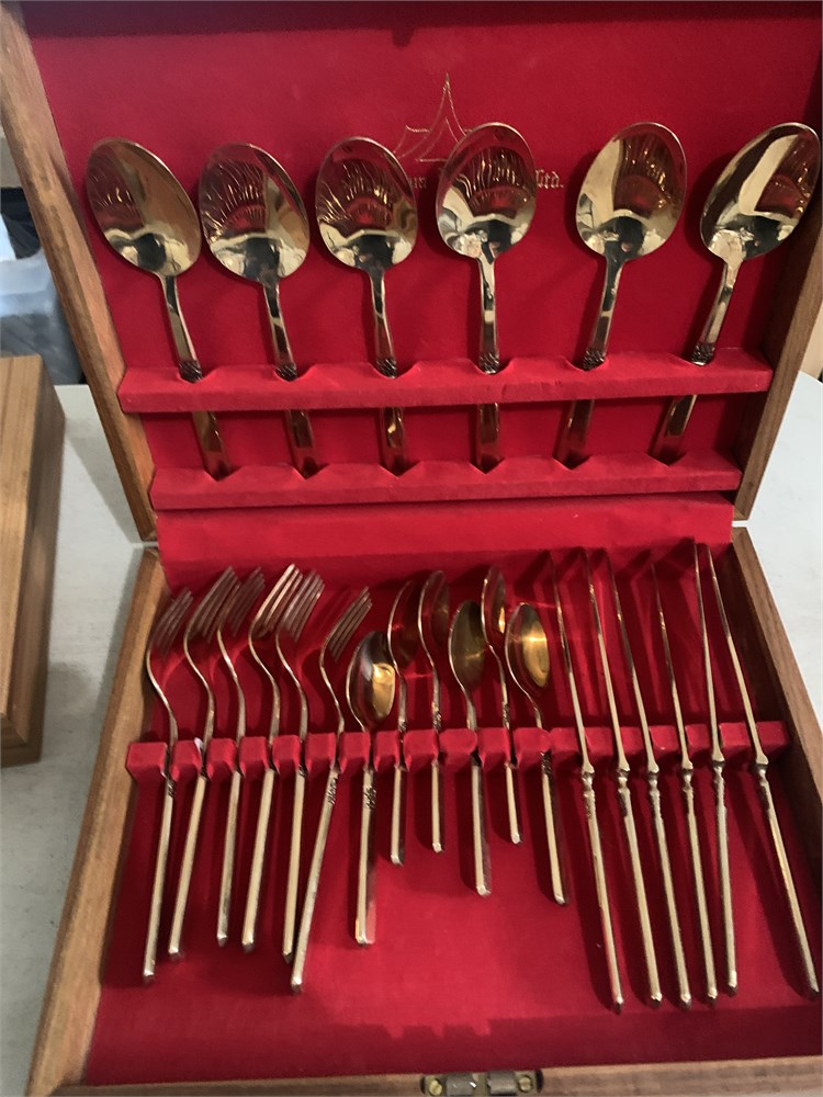 Thai Brass & Bronze Flatware Set W/Faux Bamboo Handles In Wooden Storage Canteen View Watchlist >