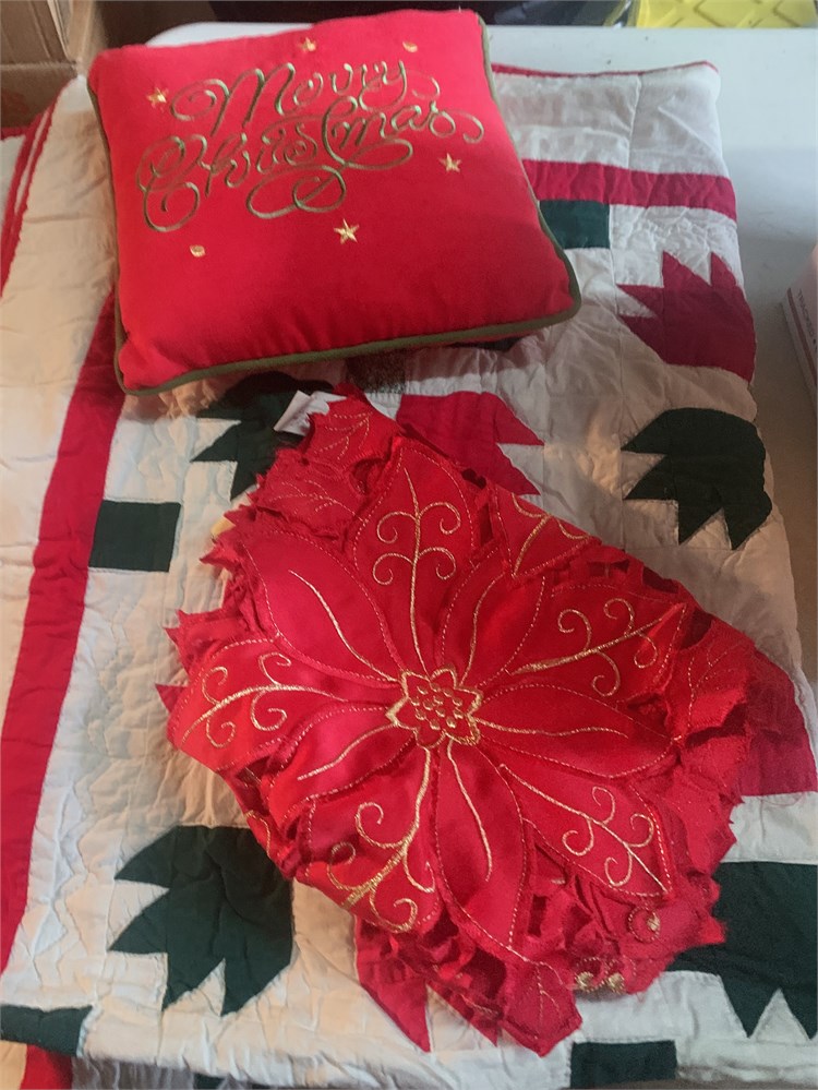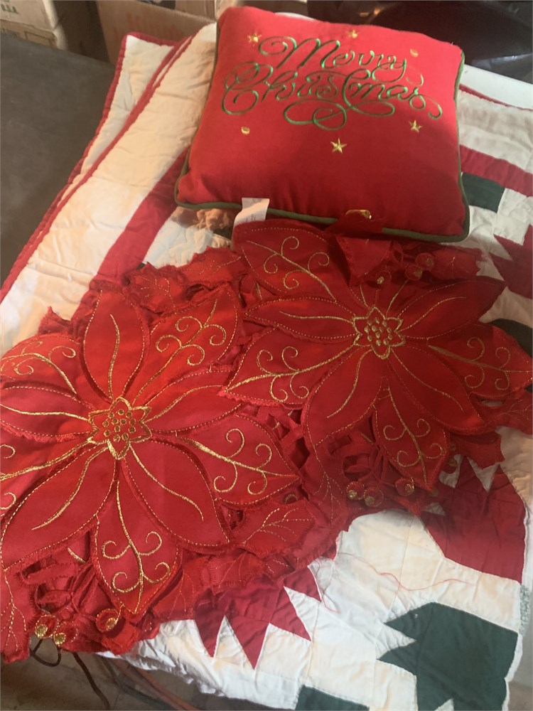 Christmas Decor Set - Quilt, Embroidered Poinsettia Placemats & Pillow View Watchlist >